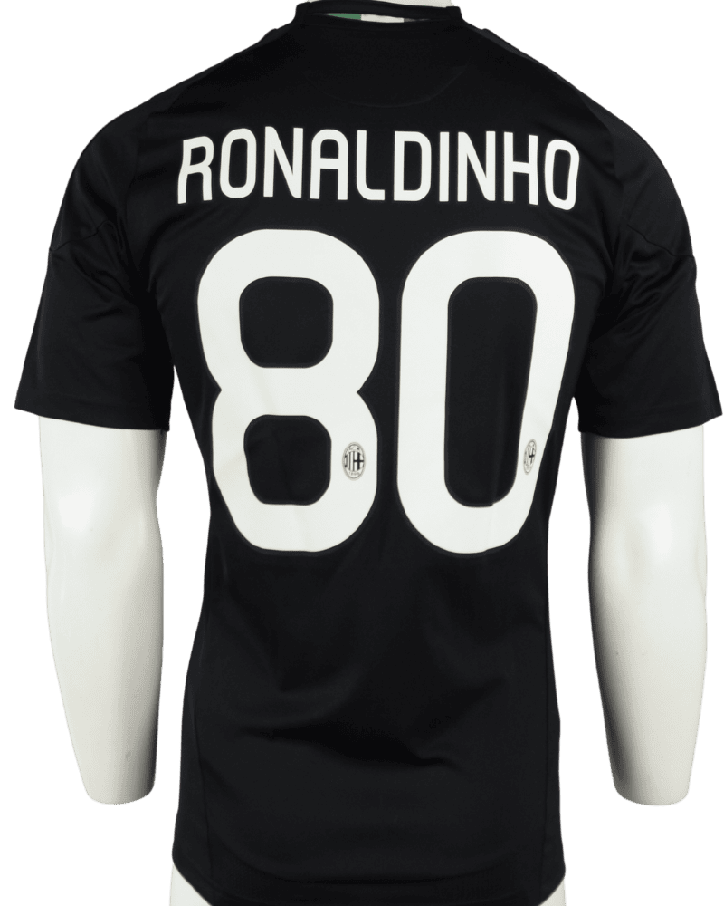 Dit is een vintage 3e shirt van AC Milan, uit het seizoen 10-11. Achterop het shirt de naam en het rugnummer van de Braziliaanse, voetbal grootheid Ronaldinho.