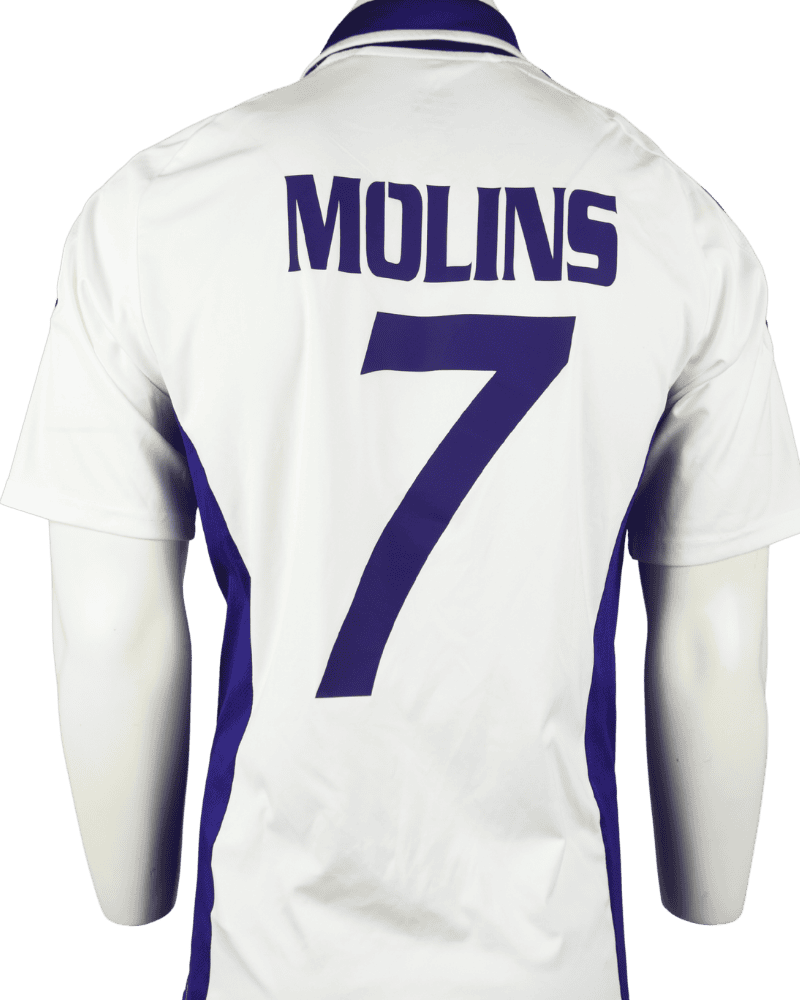 Dit is een vintage thuisshirt van RSC Anderlecht, uit het seizoen 11/12. Achterop het shirt de naam en het rugnummer van de Uruguayaanse -Zweedse middenvelder Guillermo Molins.