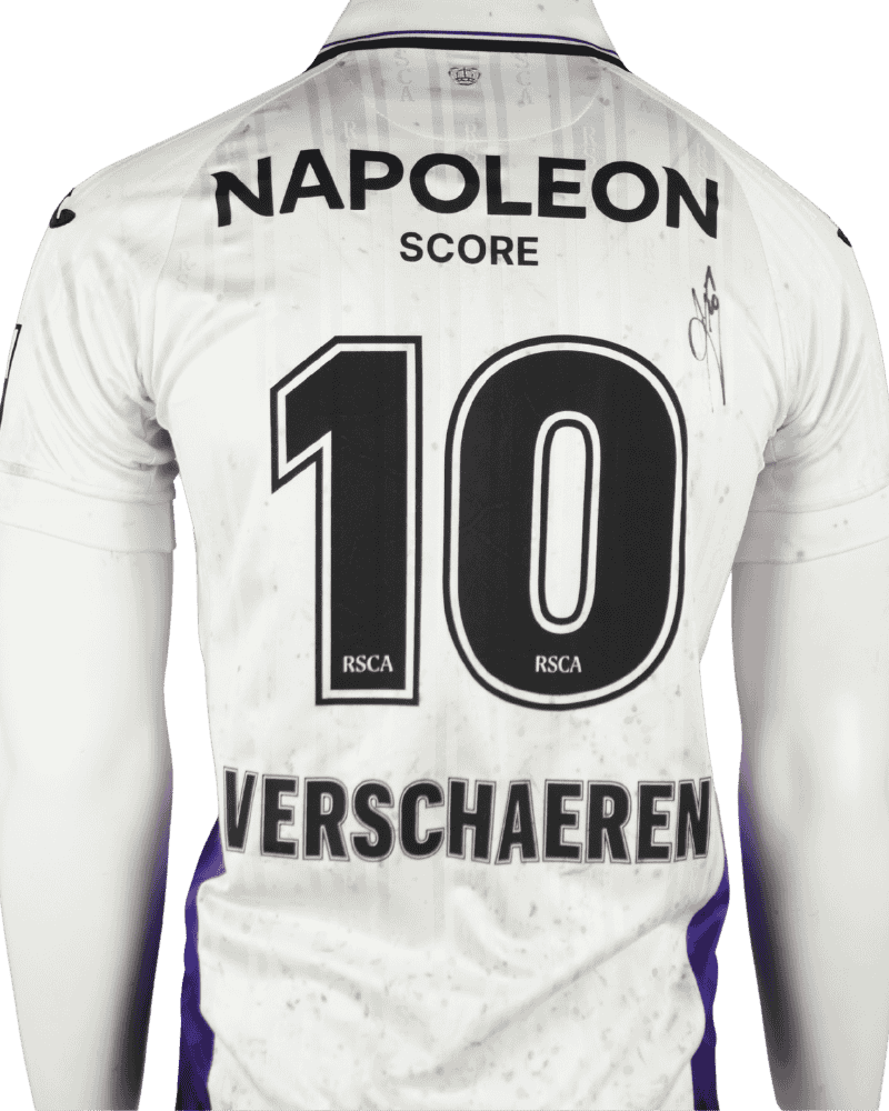 Het shirt is gedragen door Yari Verschaeren in de wedstrijd: KVC Westerlo – RSC Anderlecht 4-0. (07-12-25) Het shirt is ook gesigneerd na de wedstrijd. Onder aan het shirt zit een chip wat geldt als certificaat, wat makkelijk te checken is via de telefoon.