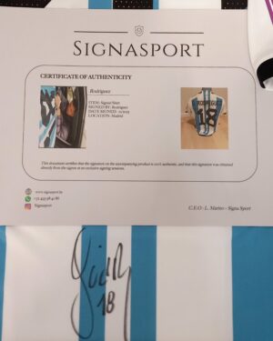 Het shirt is in perfecte conditie. Onder het rugnummer vind je zijn handtekening die hij gesigneerd heeft bij de COA (echtheidscertificaat) leverancier SIGNASPORT. Op het COA vind je een signeerfoto, locatie en datum van waar en wanneer de signering met Guido Rodríguez plaatsvond. Meer informatie, vragen of opmerkingen over het item. ‘Laat het me gerust weten via de WhatsApp button (knop) links op jou beeldscherm.