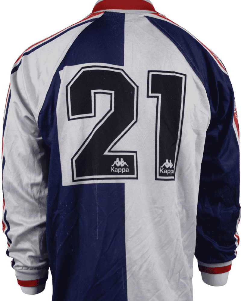 Een officieel echtheidscertificaat ontbreekt als zo vaak bij dit type shirts. Maar aan alle details zoals het stof zie je dat dit een matchworn (wedstrijd gedragen) shirt is. Meer informatie, vragen of opmerkingen over het item. ‘Laat het me gerust weten via de WhatsApp button (knop) links op jouw beeldscherm. Een officieel product van Bilbao en Kappa.