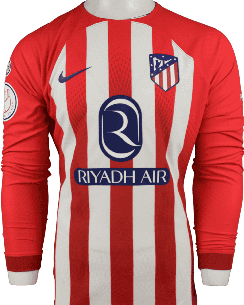 Dit is een match-prepared thuisshirt van Atlético Madrid, uit het seizoen 23/24.