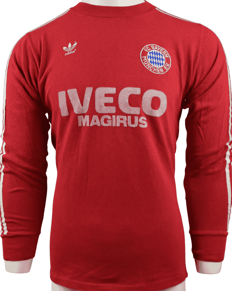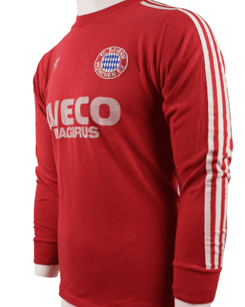 Dit is een vintage thuisshirt van Bayern München, uit seizoen 82-83. Bekende spelers waren o.a. Jean-Marie Pfaff, Klaus Augenthaler, Paul Breitner & Karl-Heinz Rummenigge.