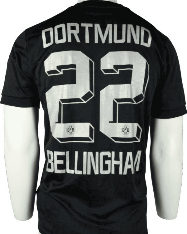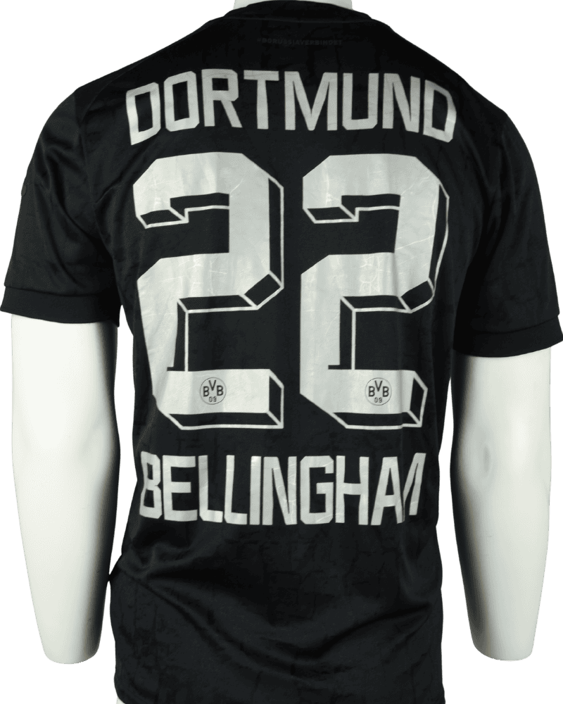 Achterop het shirt de naam en het rugnummer van de top middenvelder Jude Bellingham. De Engelsman, speelde in totaal 132 wedstrijden waarin hij 24 keer tot scoren kwam.