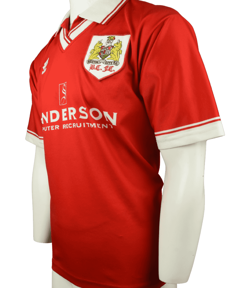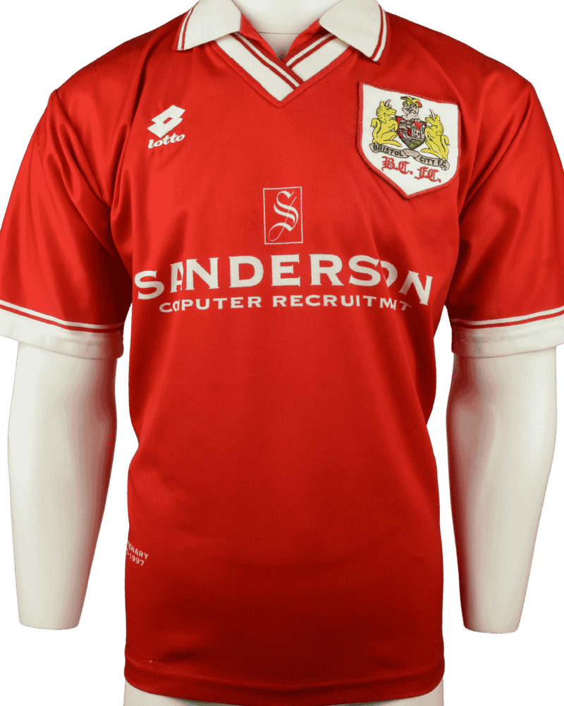 Dit is een uniek vintage thuisshirt van Bristol City FC, uit het seizoen 96-97.