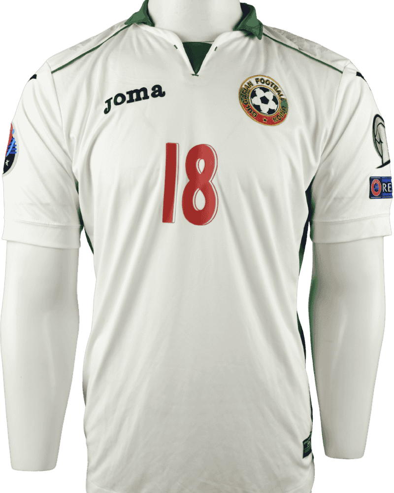 Een officieel echtheidscertificaat ontbreekt als zo vaak bij dit type shirts. Maar aan alle details zie je dat dit een matchworn (wedstrijd gedragen) shirt is. Meer informatie, vragen of opmerkingen over het item. ‘Laat het me gerust weten via de WhatsApp button (knop) links op jouw beeldscherm. Een officieel product van Bulgarije en Joma.