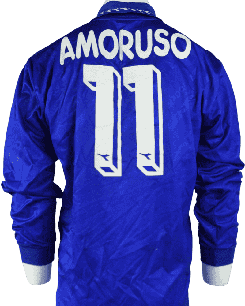 Achterop het shirt naam en rugnummer van de Italiaanse spits Nicola Amoruso.