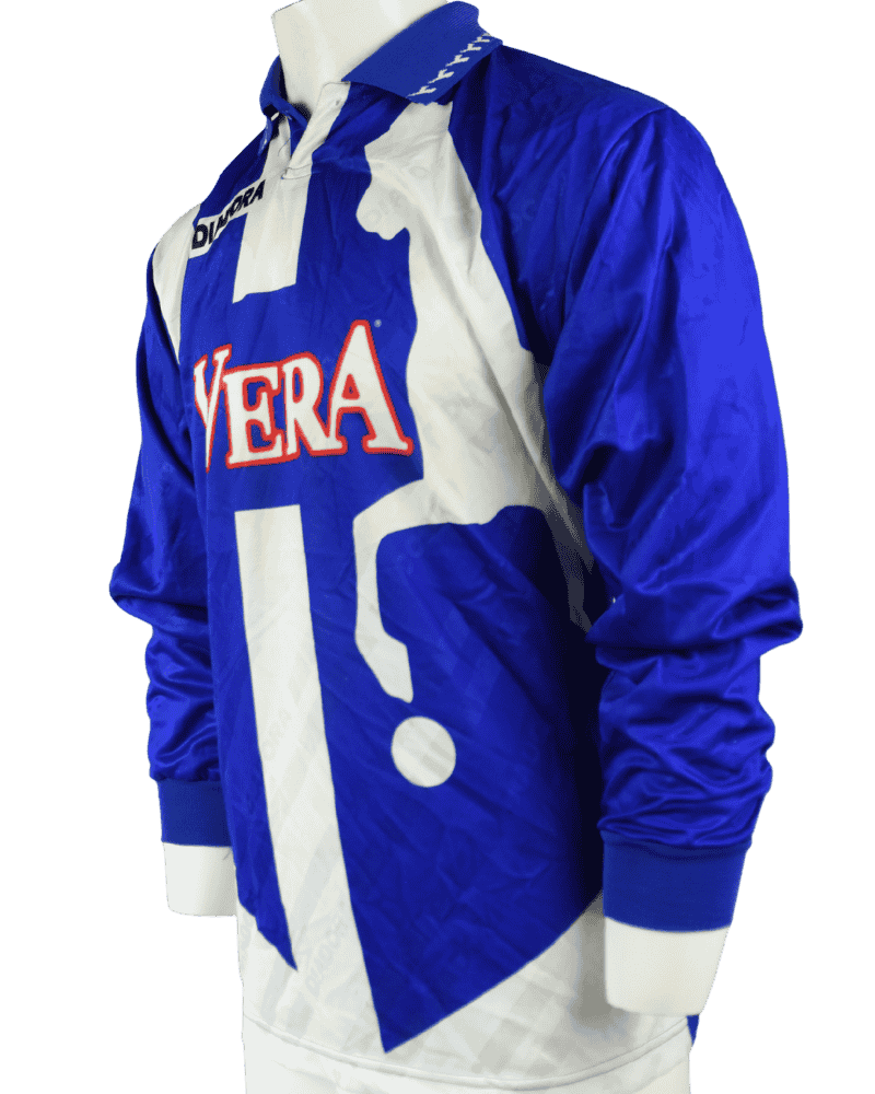 Een officieel echtheidscertificaat ontbreekt als zo vaak bij dit type shirts. Maar aan alle details zoals het stof en de bedrukking zie je dat een matchworn (wedstrijd gedragen) shirt is. Meer informatie, vragen of opmerkingen over het item. ‘Laat het me gerust weten via de WhatsApp button (knop) links op jouw beeldscherm. Een officieel product van Padova en Diadora.