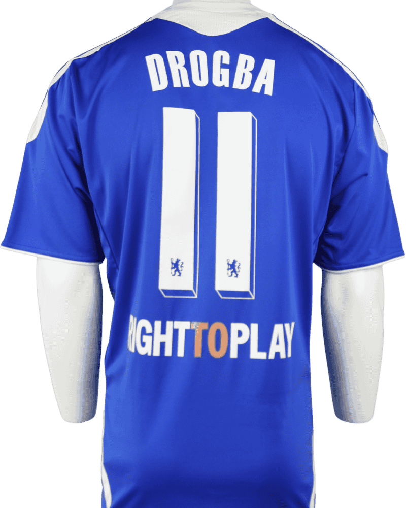 Achterop het shirt de naam en het rugnummer van de Ivoriaan, Didier Drogba. De topspits speelde in totaal 341 wedstrijden waarin hij 157 keer tot scoren kwam.