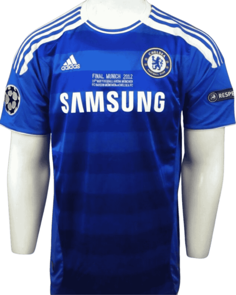 Dit is een gesigneerd thuisshirt van Chelsea FC. Champions League finale. 19-05-2012. München – Allianz Arena. Bayern München VS Chelsea. Uitslag: 1-1. Stafschoppen 3-4.
