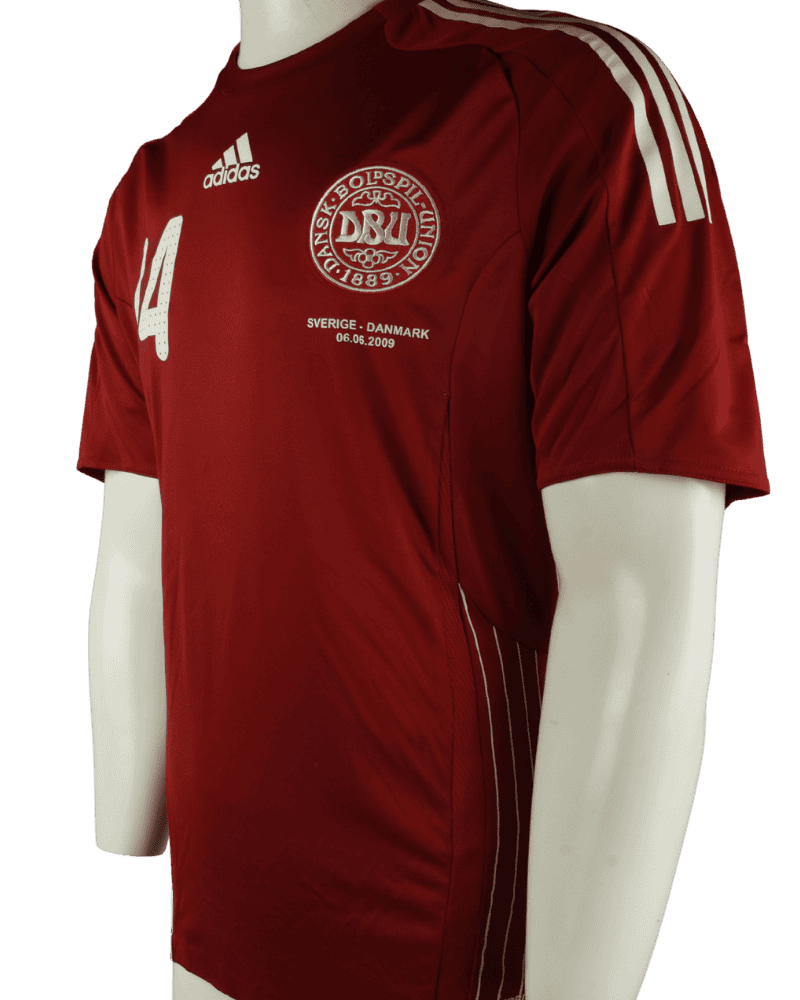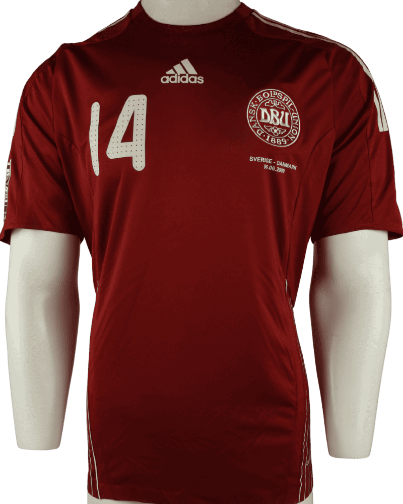 Dit is een matchworn thuisshirt van Denemarken, gedragen door Michael Silberbauer op 6 juni 2009 tegen Zweden.