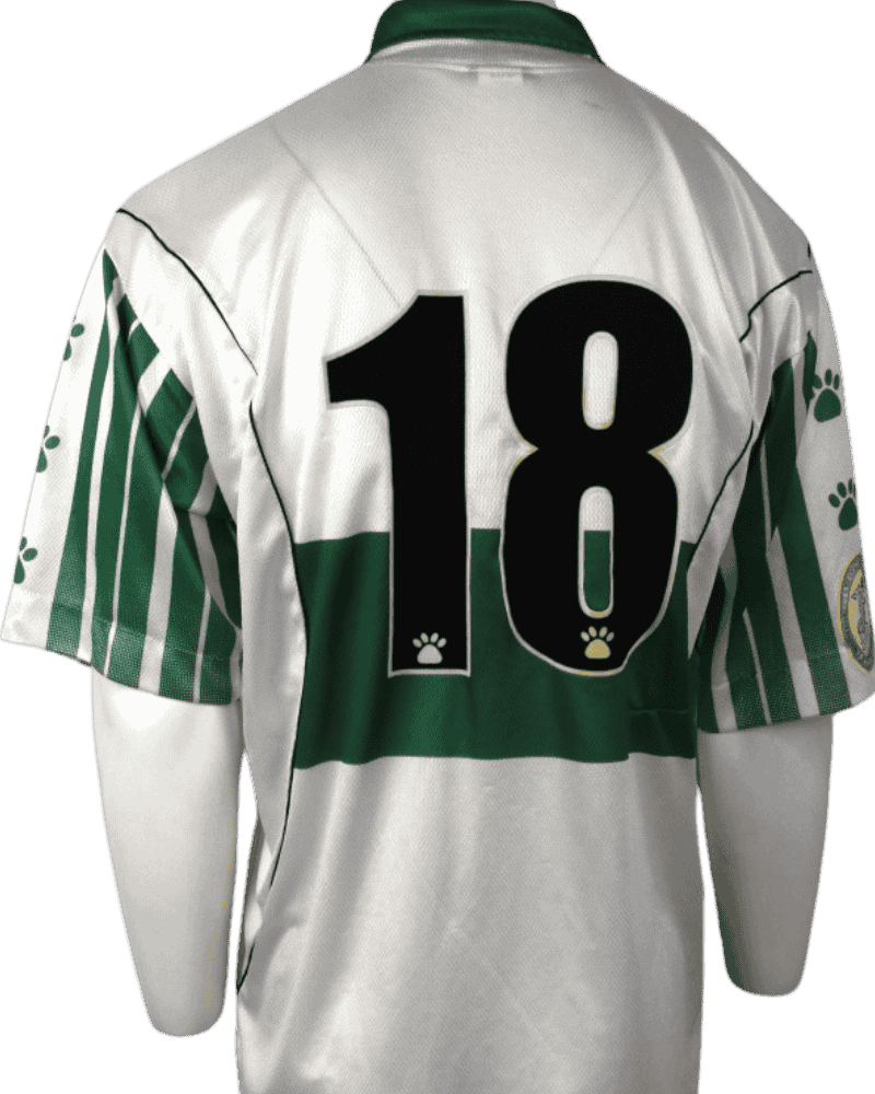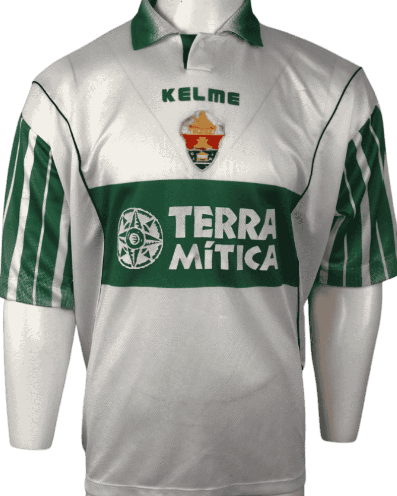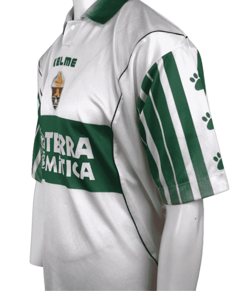 Dit is een vintage thuisshirt van Elche CF, uit seizoen 97/98. Het jaar dat de club 75 jaar bestond.