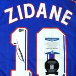 Esta es una camiseta firmada de la selección francesa. Final del Mundial, 12 de julio de 1998. Stade de France - Saint-Denis (París). Brasil - Francia. Resultado: 0-3. En la parte posterior de la camiseta se encuentra el nombre y el número de uno de los mejores centrocampistas de todos los tiempos, Zinédine Zidane. Junto al número, se encuentra su firma, la cual fue verificada por un representante del proveedor de certificados de autenticidad Beckett. El certificado y el holograma (código QR) ubicados en la parte posterior de la camiseta contienen un número de certificación que se puede verificar en el sitio web correspondiente.La camisa está en perfecto estado. Más información, dudas o comentarios sobre el artículo. 'Por favor, háganmelo saber a través del botón de WhatsApp de la izquierda. tu pantalla. ¡Compra ahora este ejemplar único de Zizou, suelto o en marco!Disponible exclusivamente en Kickandrush.