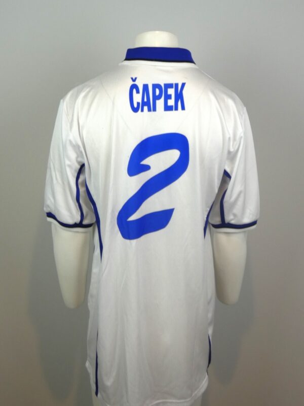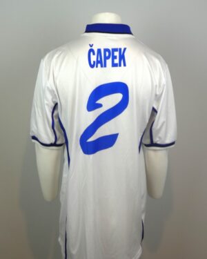 Dit is een wedstrijdgedragen Europees thuisshirt van FC Slovan Liberec, uit seizoen 01/02. Achterop het shirt rugnummer en naam van Pavel Capek.