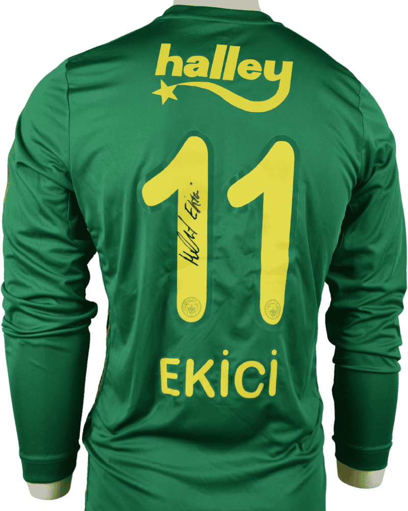 Achterop het shirt de naam, rugnummer en handtekening van Turkse middenvelder Mehmet Ekici.