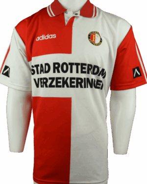 Dit is een zeldzaam vintage thuisshirt van Feyenoord, uit het seizoen 96/97.