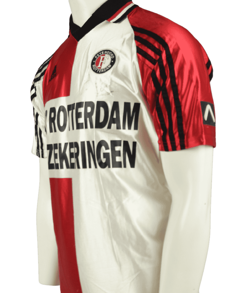 Dit is een vintage thuisshirt van Feyenoord, uit het seizoen 1998-1999. De Rotterdammers werden dat jaar voor de 14e in de geschiedenis landskampioen.