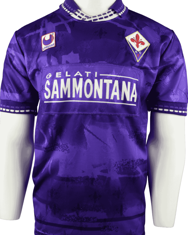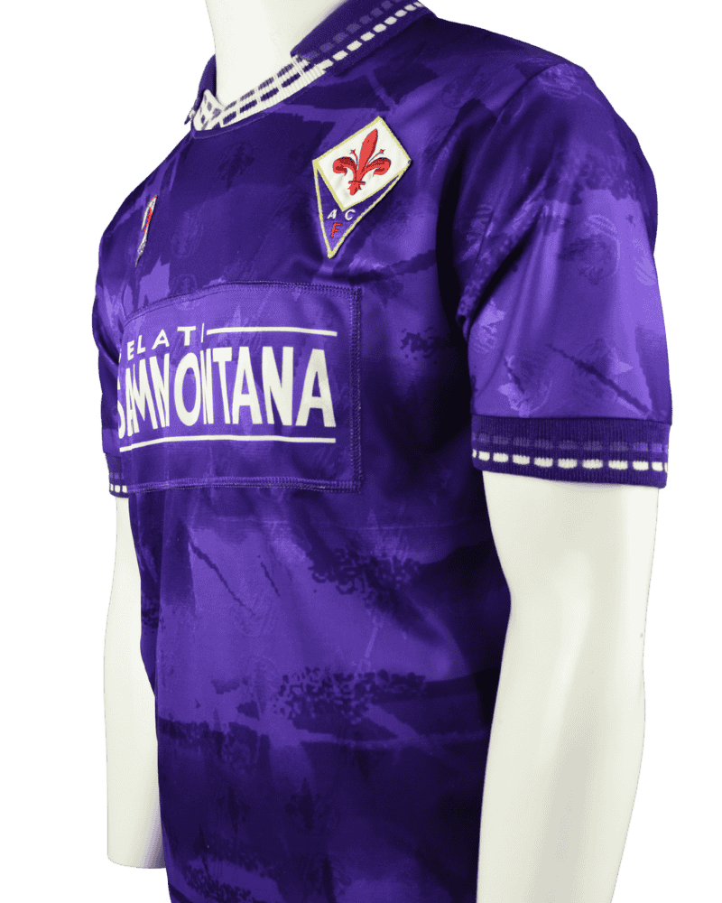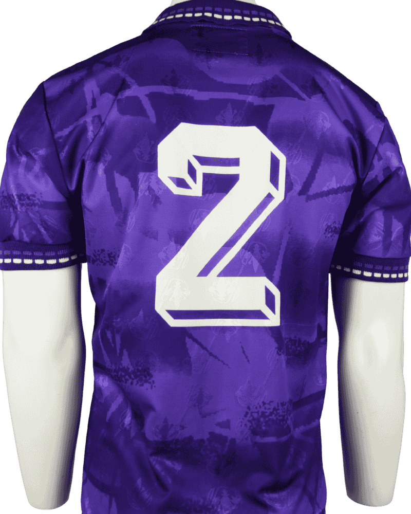 Dit is een vintage thuisshirt van AFC Fiorentina, uit het seizoen 94-95. Achterop het shirt rugnummer 2 wat toebehoort aan Daniele Carnasciali.