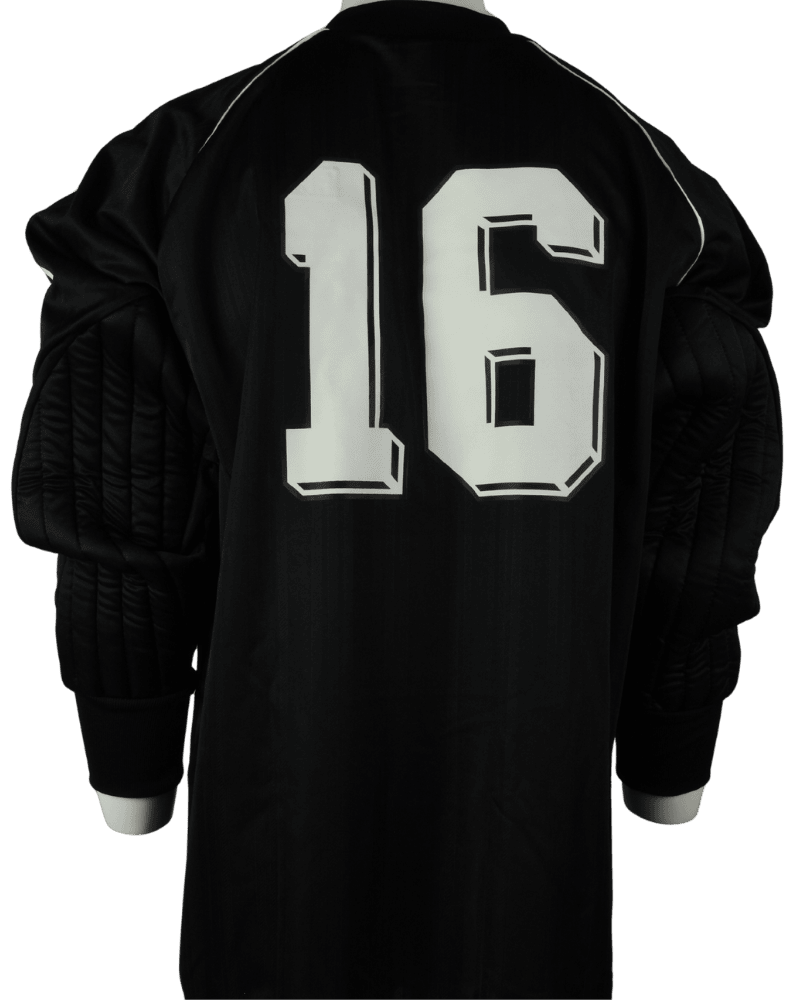 Achterop het shirt rugnummer 16 van Fabien Barthez.