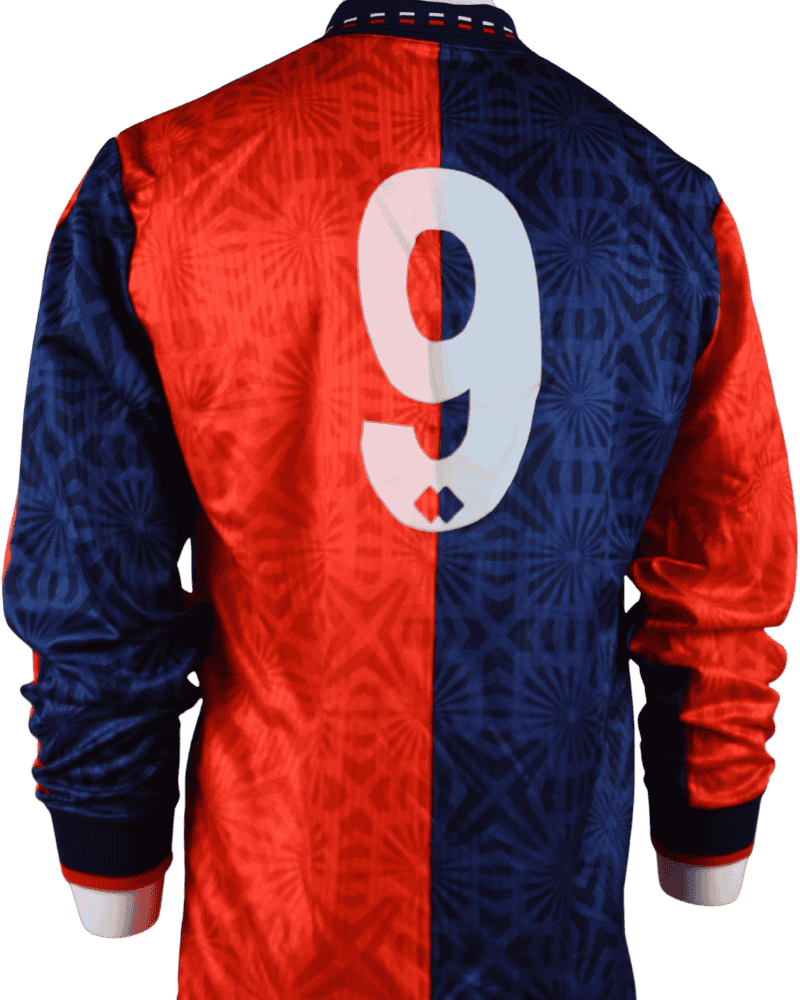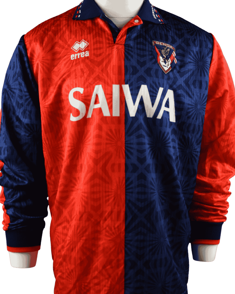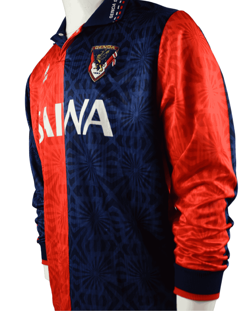 Dit is een thuisshirt van Genua CFC. Lazio Roma VS Genua, voor de Serie A wedstrijd op 28-11-1993. Achterop het shirt rugnummer 9 wat destijds toebehoorde aan de aanvaller John van ’t Schip.