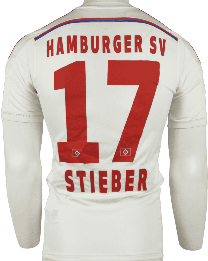 Dit is een matchworn thuisshirt van HSV. Hoffenheim-Hamburger SV, op 14-03-2015. Achterop het shirt de naam en het rugnummer van de Hongaarse middenvelder Zoltán Stieber.