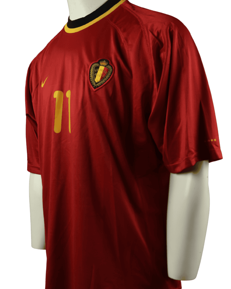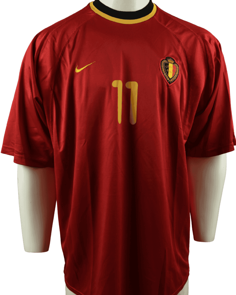 Dit is een thuisshirt van jong België. België-Nederland, op 28-03-2000. Achterop het shirt rugnummer 11 wat toebehoort aan de middenvelder Kevin van Dessel, die het na de EK kwalificatie wedstrijd heeft geruild met verdediger en Feyenoord onder 21 trainer Pascal Bosschaart.