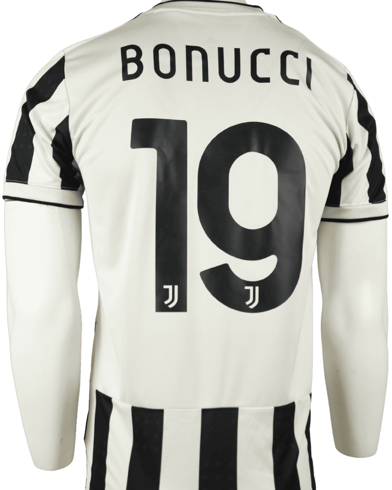 Dit is een thuisshirt van Juventus FC, uit het seizoen 21-22. Achterop het shirt de naam en het rugnummer van voormalig Italiaans top verdediger, Leonardo Bonucci.