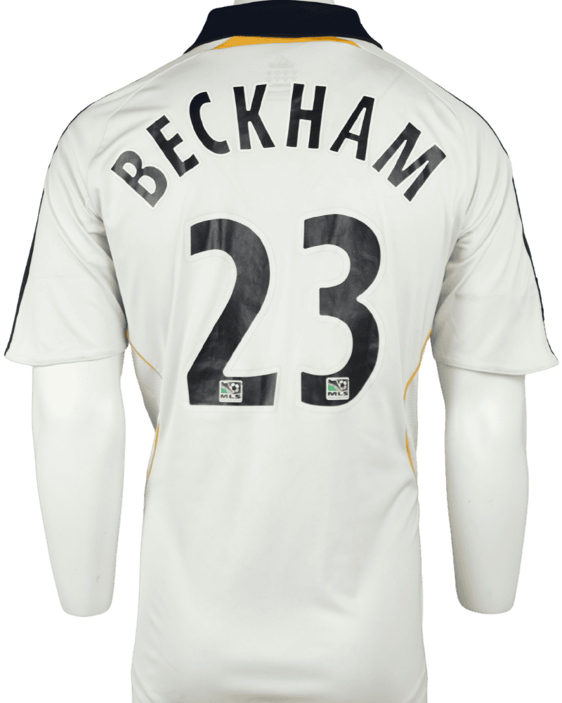 Achterop het shirt naam en rugnummer van David Beckham. De Engelse, top middenvelder speelde in totaal 124 wedstrijden voor Galaxy waarin hij 20 keer scoorde en 42 assists gaf.