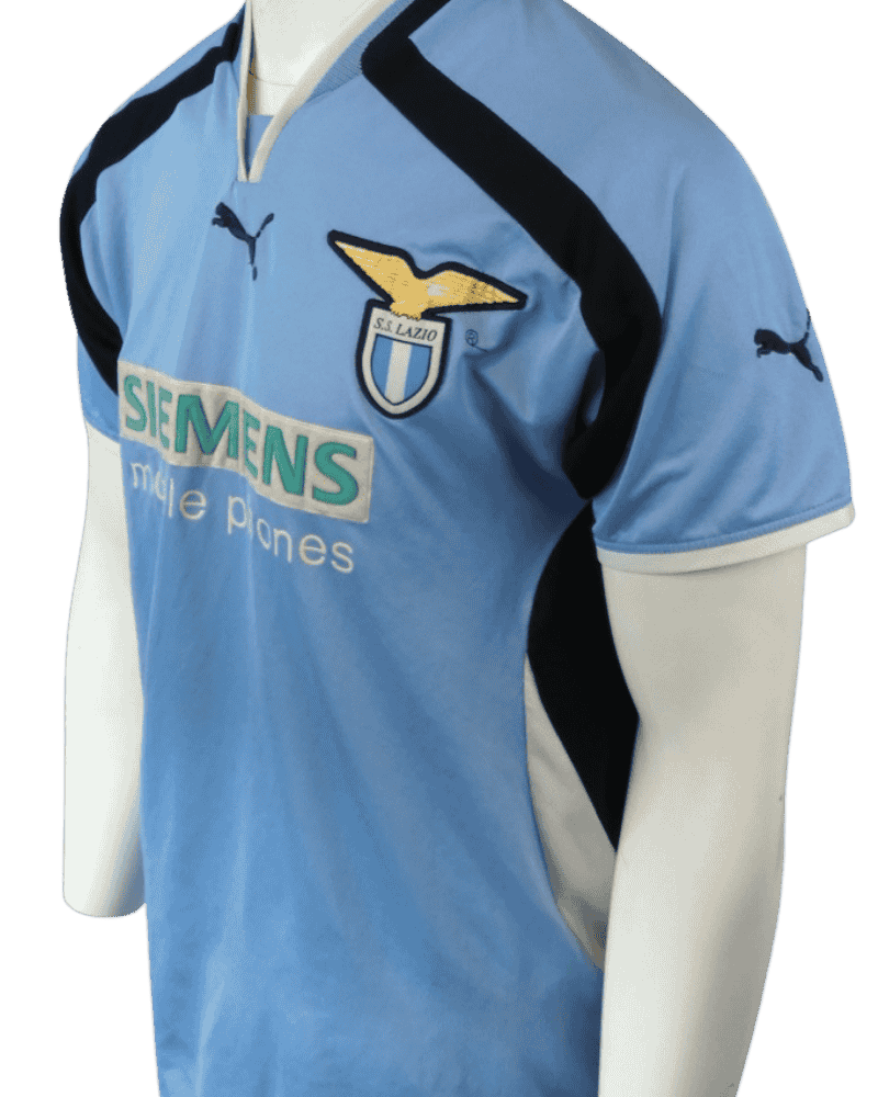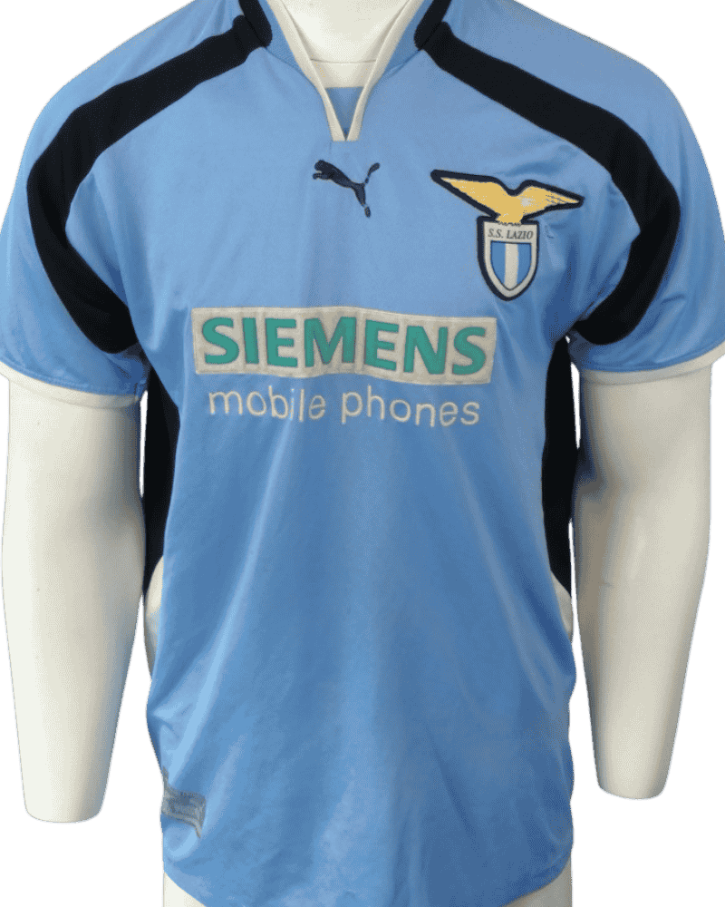 Dit is een vintage thuisshirt van SS Lazio Roma, uit het seizoen 00/01.