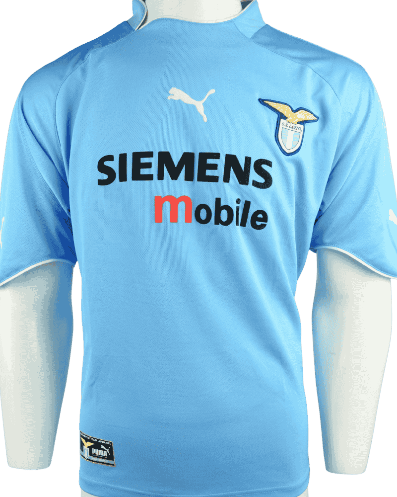 Dit is een vintage thuisshirt van SS Lazio Roma, uit het seizoen 02-03.