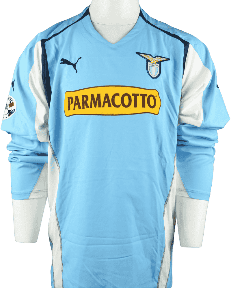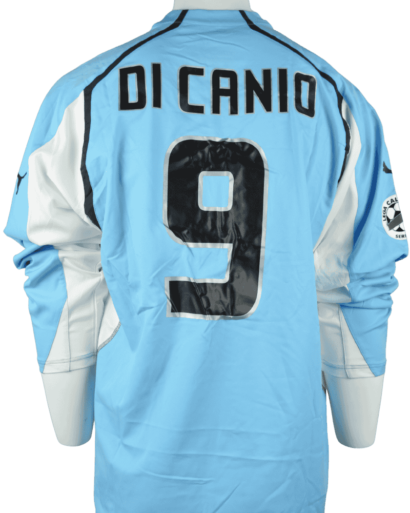 Dit is een matchworn thuisshirt van Lazio Roma, uit het seizoen 04/05. Achterop het shirt de naam en het rugnummer van cultheld en top aanvaller Paolo Di Canio.