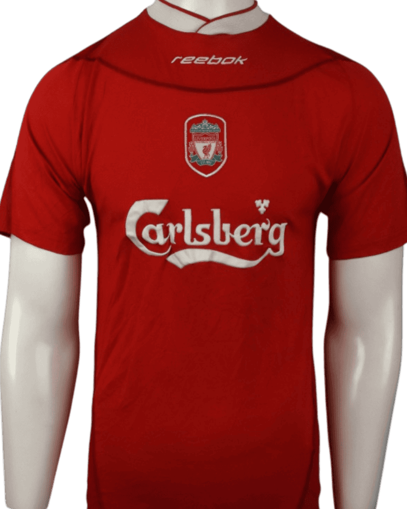 Dit is een vintage thuisshirt van Liverpool FC, uit de jaren 02/04.