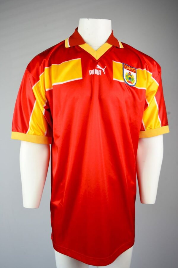 Dit is een uniek vintage thuisshirt van (Noord) Macedonië, uit de periode 1998-01.