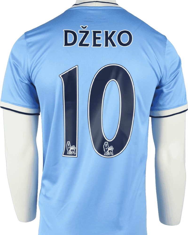Achterop het shirt de naam en het rugnummer van top spits Edin Džeko.