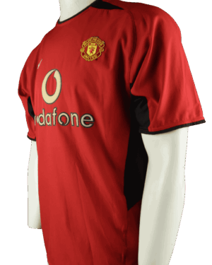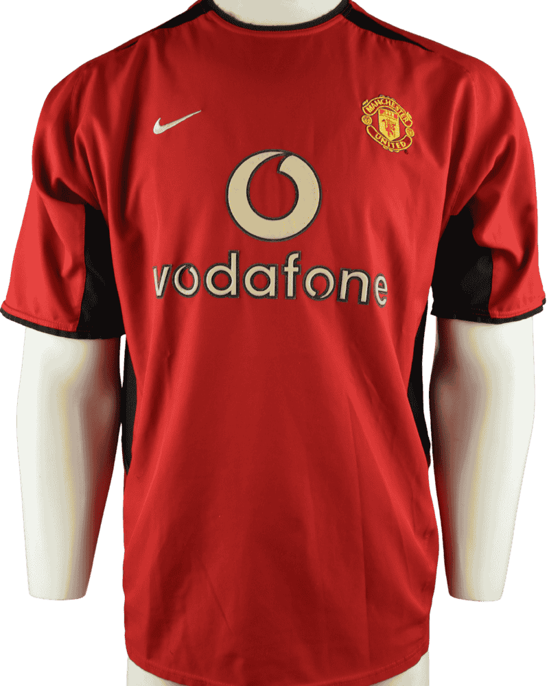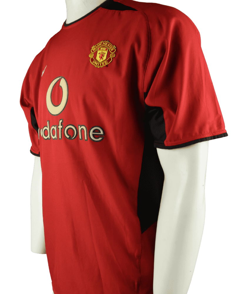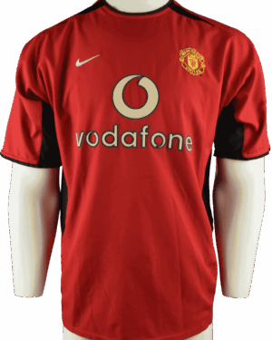 Dit is een vintage thuisshirt van Manchester United, uit de jaren 02/04.