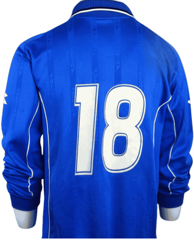 Achterop het shirt rugnummer 18 van Fabio Pecchia. De middenvelder speelde in totaal 152 wedstrijden voor Napoli waarin hij 21 keer scoorde.