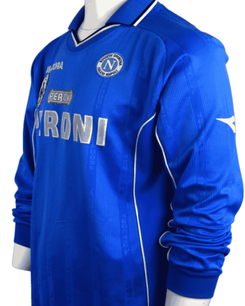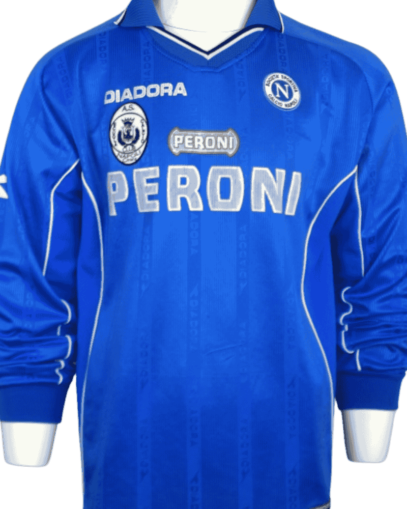 Dit is een vintage thuisshirt van SSC Napoli, uit het seizoen 00-01.