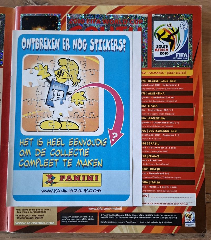 Panini Wereldkampioenschap Zuid Afrika 2010. Compleet verzamelalbum.