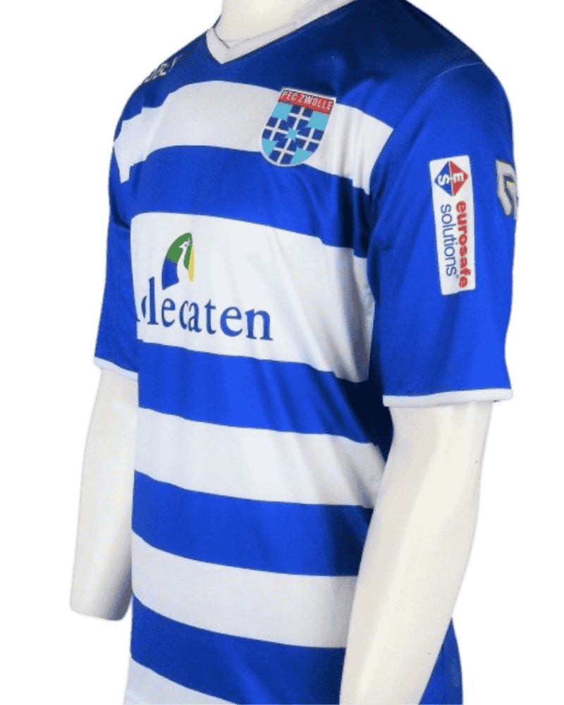 Dit is een matchworn thuisshirt van PEC Zwolle, uit het seizoen 2015/2016. Achterop het shirt rugnummer 24 van de rechtsbuiten Boban Lazic.