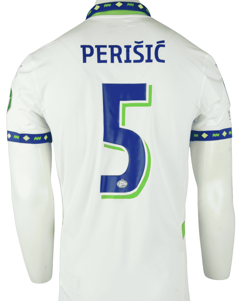 Dit is een vintage derde shirt van PSV, uit seizoen 24/25.. Achterop het shirt de naam en het rugnummer van de Kroaat Ivan Perisic.