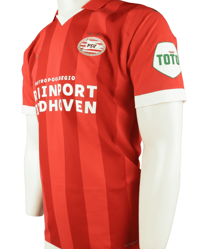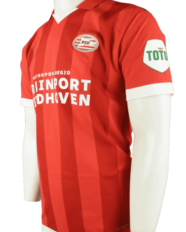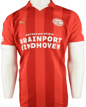 Dit is een vintage thuisshirt van PSV, uit seizoen 23/24. Achterop het shirt de naam en het rugnummer van de Franse verdediger Olivier Boscagli.