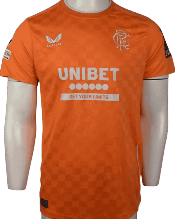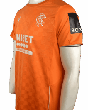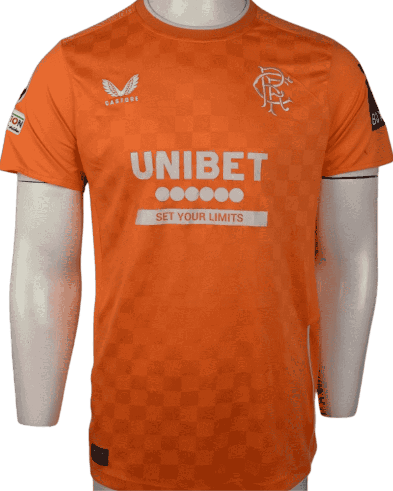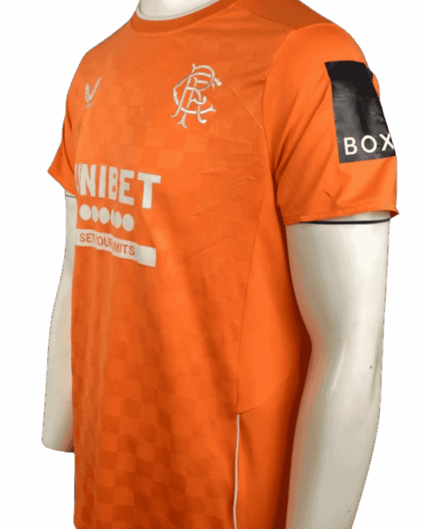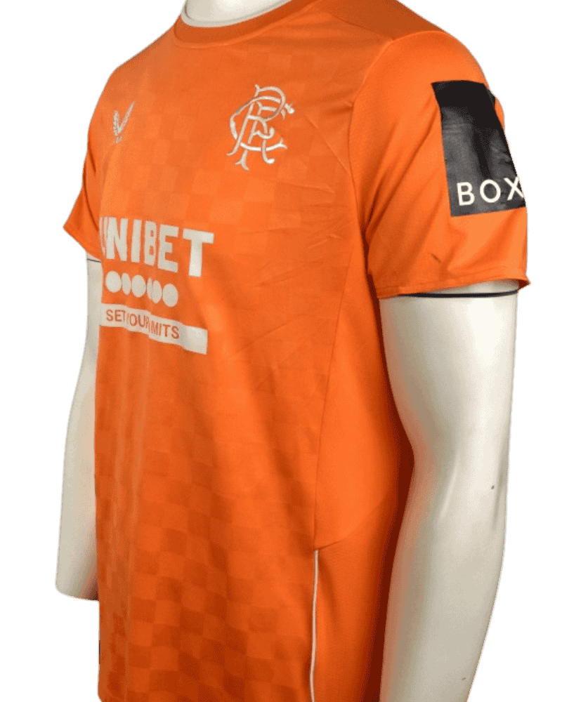 Een officieel echtheidscertificaat ontbreekt als zo vaak bij dit type shirts. Maar aan alle details zoals bv. stof en luchtgaatjes zie je dat dit een matchworn (wedstrijd gedragen) shirt is. Meer informatie of vragen, over het item. ‘Laat het me weten via de WhatsApp button (knop) links op jouw beeldscherm. Een officieel product van Rangers en Castore.