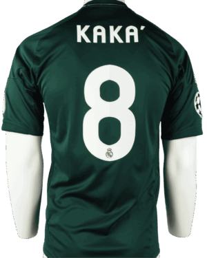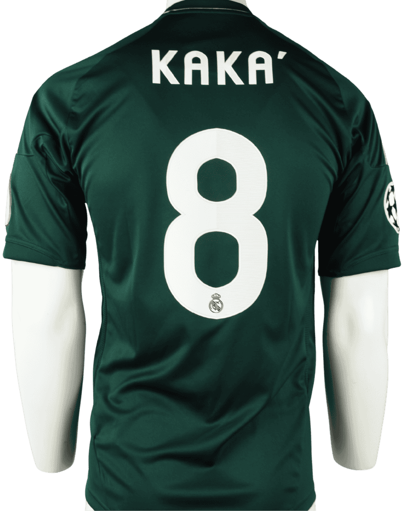 Achterop het shirt de naam en het rugnummer van Ricardo Izecson dos Santos Leite, oftewel Kaká. De top middenvelder speelde 120 duels waarin hij 29 keer tot scoren kwam.