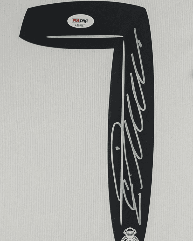 Op het rugnummer vind je zijn handtekening die hij heeft gesigneerd en is waargenomen door een vertegenwoordiger van de betrouwbare COA (certificaat) leverancier PSA/DNA. Op het COA en hologram wat zich aan de achterkant van het shirt bevindt. Staat een certificering nummer wat gecontroleerd kan worden op de toebehorende website.