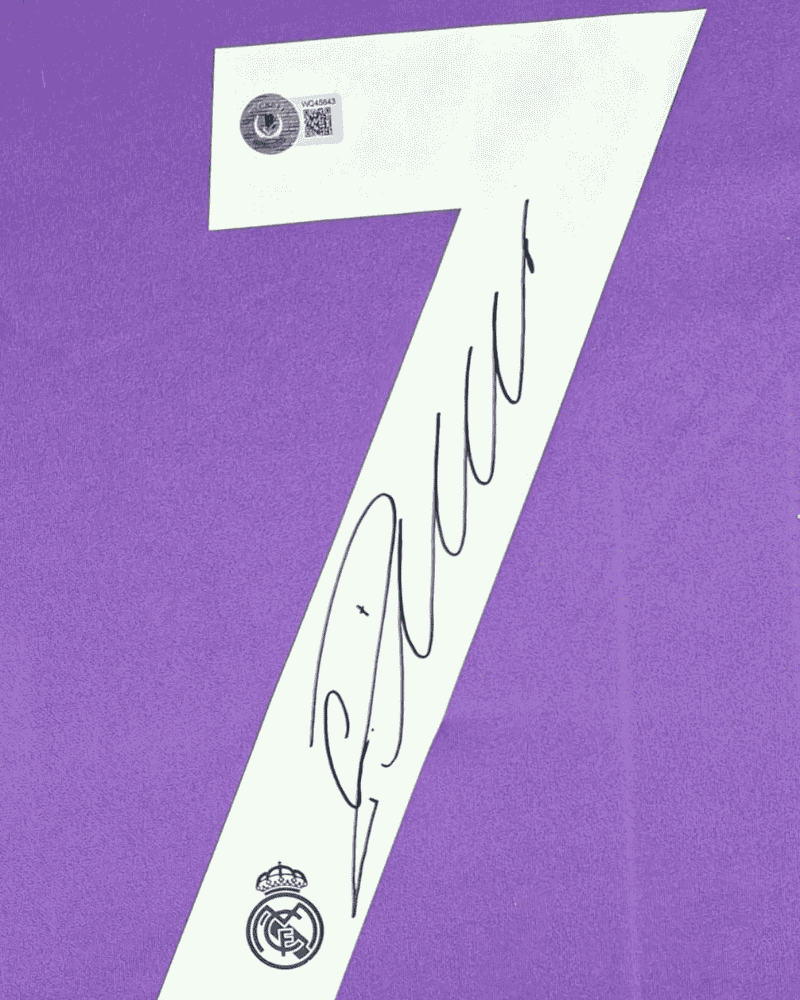 Op het rugnummer vind je zijn handtekening die hij heeft gesigneerd en is waargenomen door een vertegenwoordiger van de betrouwbare COA (certificaat) leverancier Beckett. Op het COA en hologram wat zich aan de achterkant van het shirt bevindt. Staat een certificering nummer wat gecontroleerd kan worden op de toebehorende website.