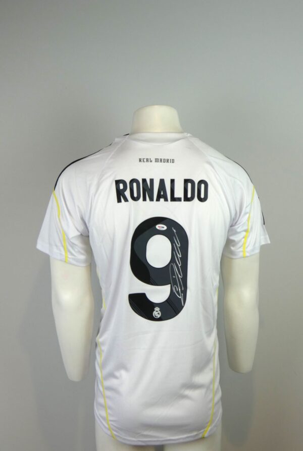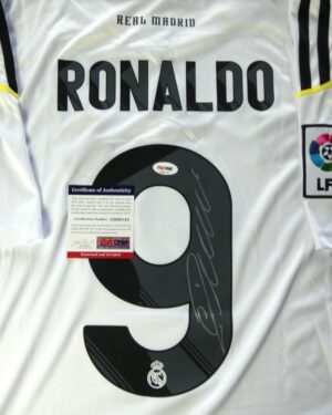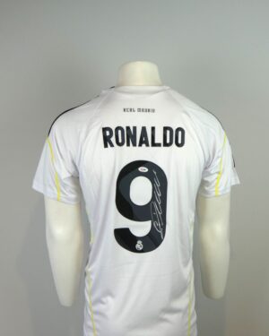 Dit is een gesigneerd thuisshirt van Real Madrid, uit het seizoen 09/10. Achterop het shirt de naam en het rugnummer van de voetbal grootheid Cristiano Ronaldo.