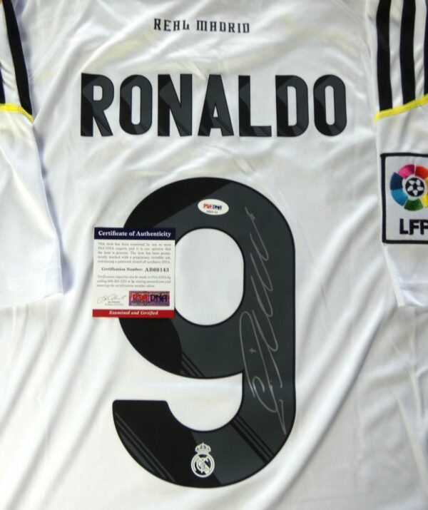 Op het rugnr vind je zijn handtekening die hij heeft gesigneerd en is waargenomen door een vertegenwoordiger van de betrouwbare COA leverancier PSA/DNA. Op het certificaat en hologram wat zich aan de achterkant van het shirt bevindt. Staat een certificering nummer wat gecontroleerd kan worden op de toebehorende website.