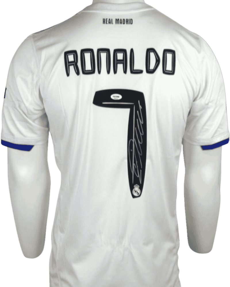 Dit is een gesigneerd thuisshirt van Real Madrid, uit het seizoen 10-11. Achterop het shirt de naam en het rugnummer van de voetbal grootheid Cristiano Ronaldo.