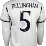 Dit is een gesigneerd thuisshirt van Real Madrid, uit het seizoen 23-24. Achterop het shirt de naam en het rugnummer van de talentvolle Engelsman, Jude Bellingham.Op het rugnr vind je zijn handtekening die hij heeft gesigneerd en is waargenomen door een vertegenwoordiger van de betrouwbare COA leverancier Beckett. Op het certificaat en hologram wat zich aan de achterkant van het shirt bevindt. Staat een certificering nummer wat gecontroleerd kan worden op de toebehorende website.Het shirt is in perfecte conditie. Meer informatie, vragen of opmerkingen over het item. ‘Laat het me gerust weten via de WhatsApp button (knop) links op jou beeldscherm. Koop nu dit prachtige shirt van deze geweldige middenvelder, los of in frame!!Exclusief verkrijgbaar bij Kickandrush.