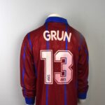 Achterop het shirt naam en rugnummer van Georges Grün. De Belgische verdediger speelde 22 wedstrijden voor de Italiaanse club waarin hij niet wist te scoren.